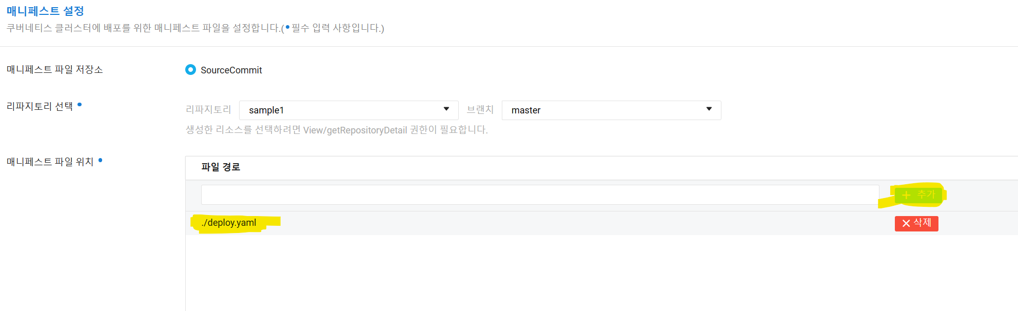 - 리포지토리 선택 - K8S 용 설정 파일 경로 추가