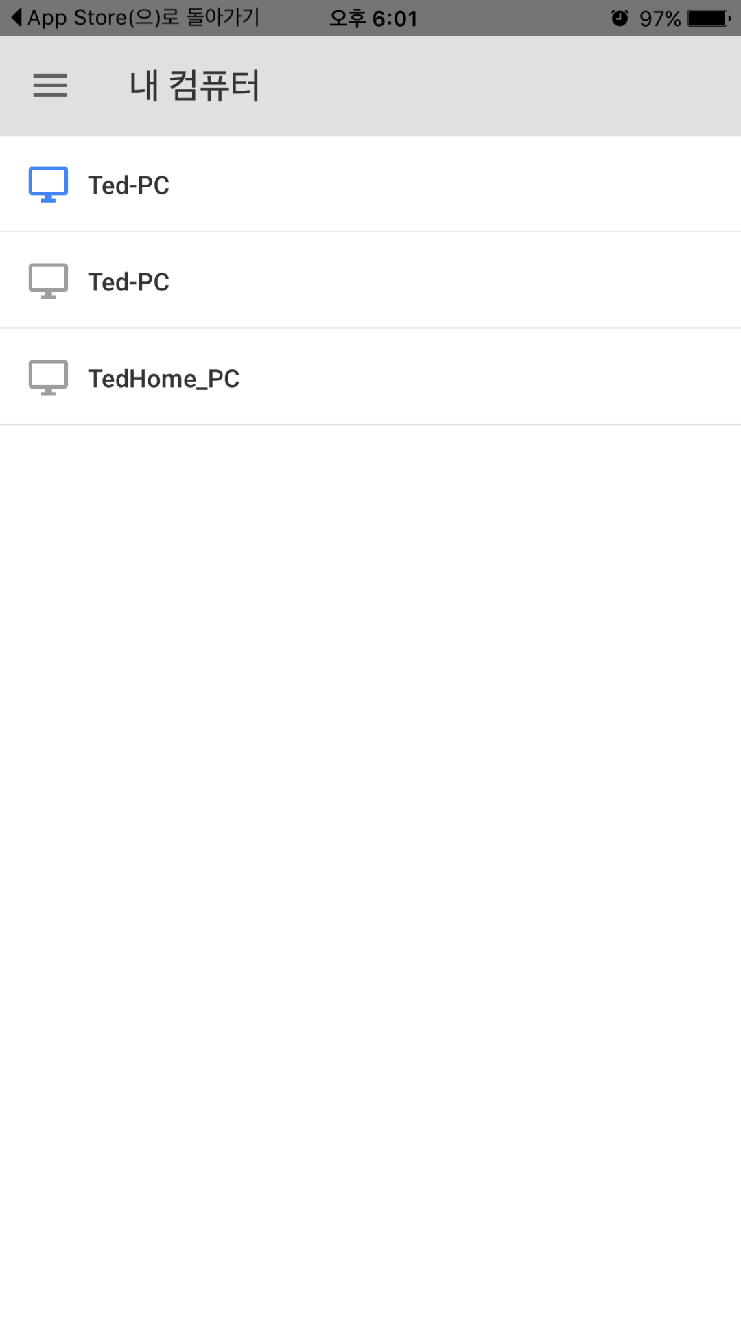 정상적으로 로그인하고 실행하면 아래처럼 원격데스크탑에 공유 된 컴퓨터 목록이 나옵니다.
